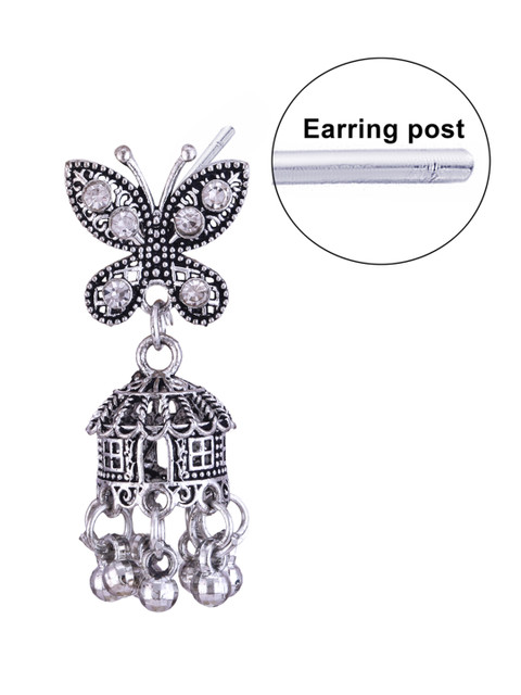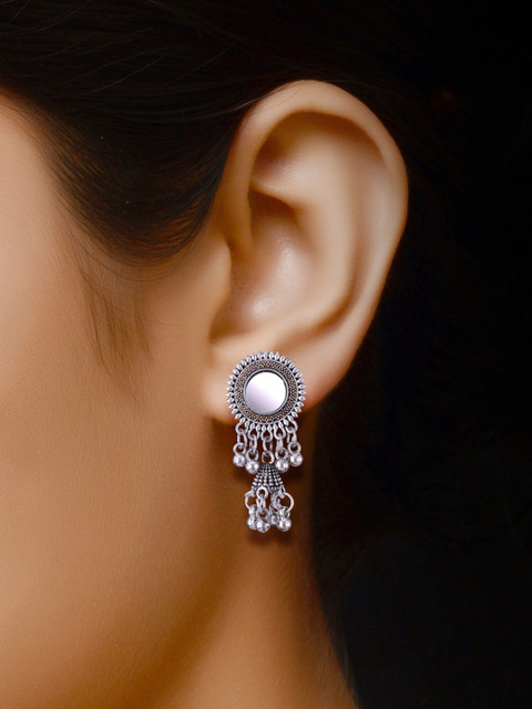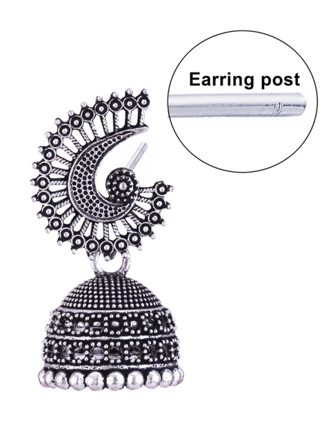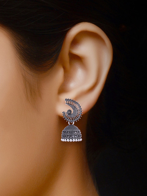 Set of 4 silver-toned dome shaped jhumkas, silver-plated