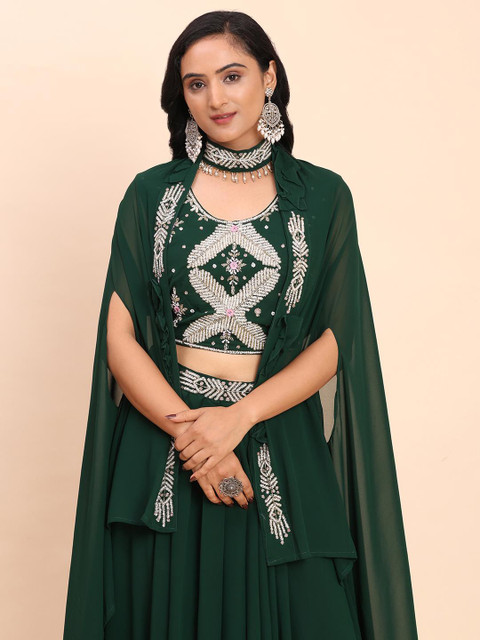 Women Georgette Embroiedred Choli Sharara & Jacket Set