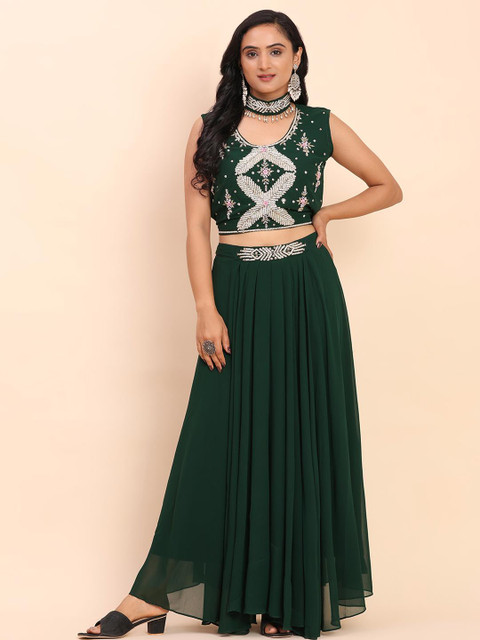 DIVASTRI Women Green Georgette Kurta Sets