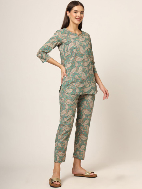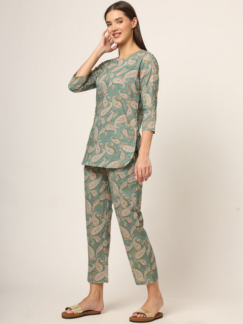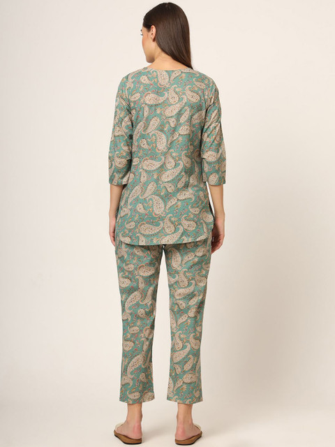 Green Printed tunic, has round neck, three quarter sleeves has a slip-on closure