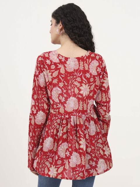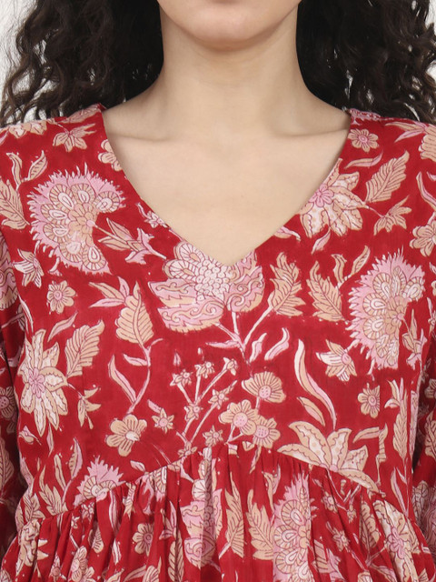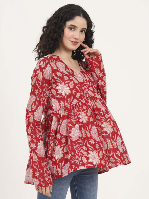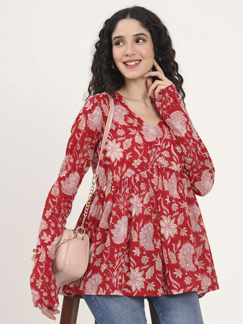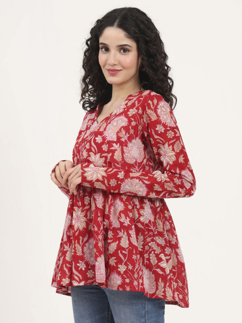 3 reviews for Divena Red Floral Printed V Neck Cotton Top