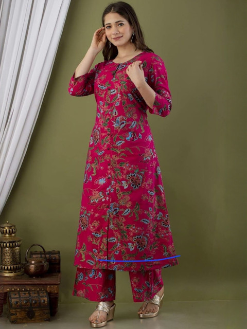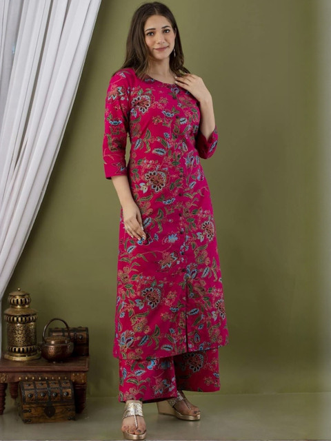 Pink printed Kurta with Palazzos