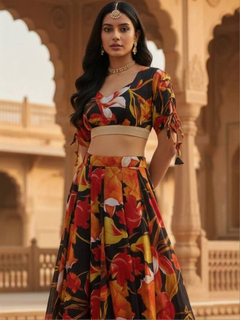 Black printed lehenga choli,
