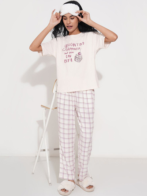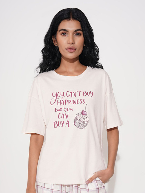 Dreamz by Pantaloons Women Printed Pure Cotton Lounge T-shirt