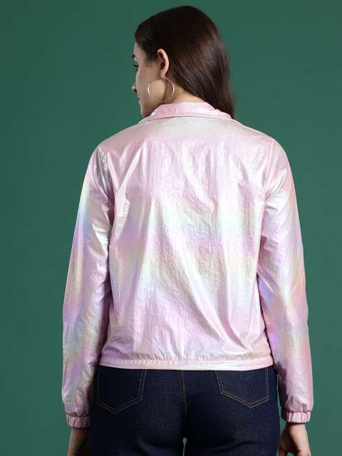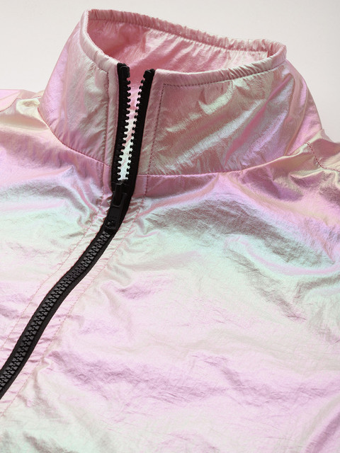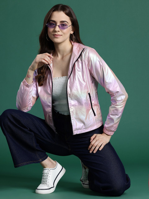 Gunmetal-toned solid tailored jacket, has a mock collar, 2 pockets ,has a zip closure, long sleeves, straight hemline, polyester lining engineered with no