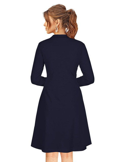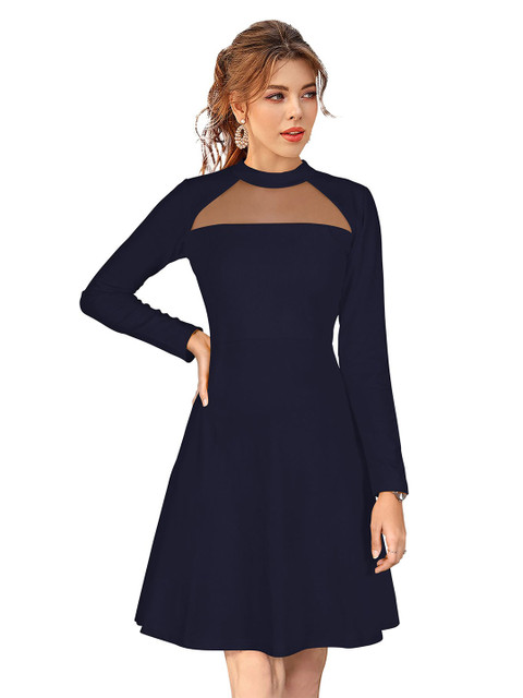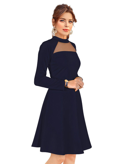 - Blue solid fit & flare dress