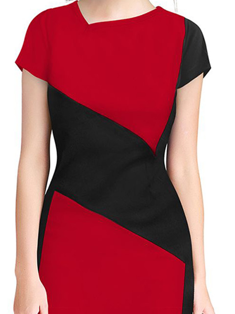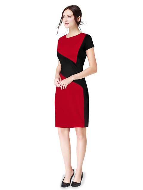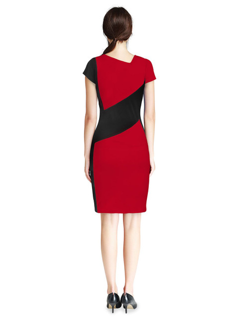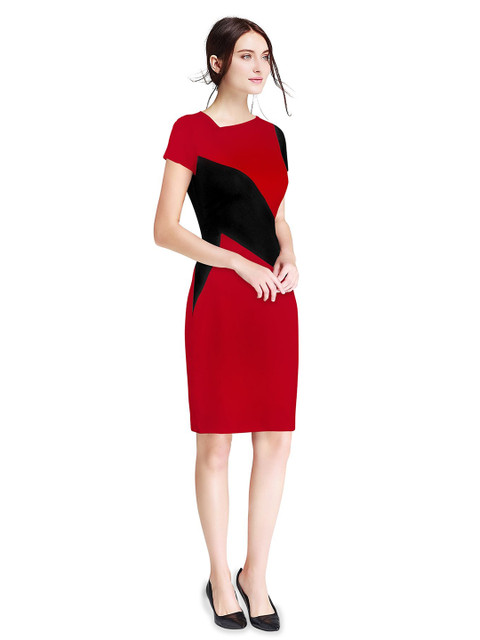 • Red solid fit & flare dress