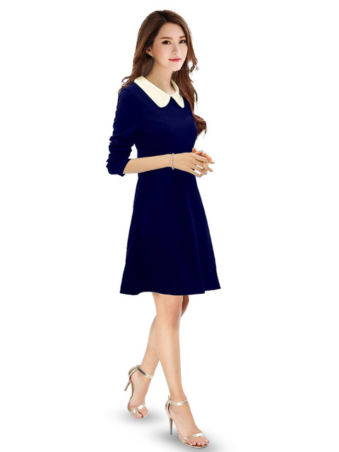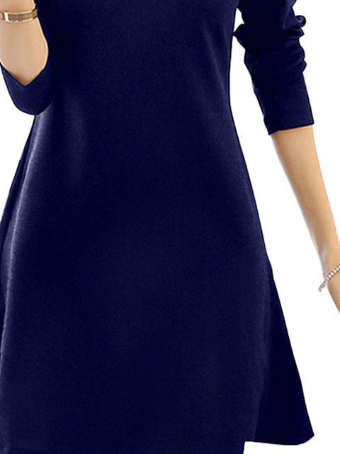 - Blue solid fit & flare dress