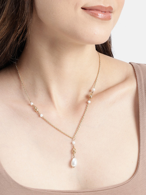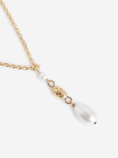 DressBerry Gold Plated and Pearl Lariat Necklace