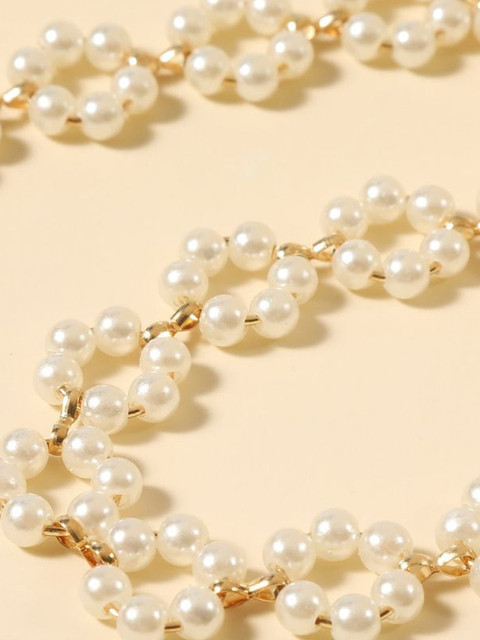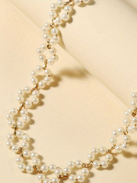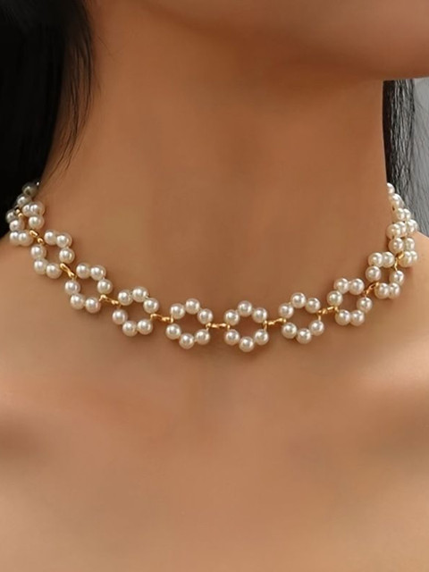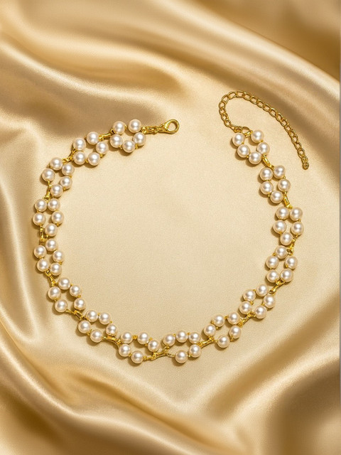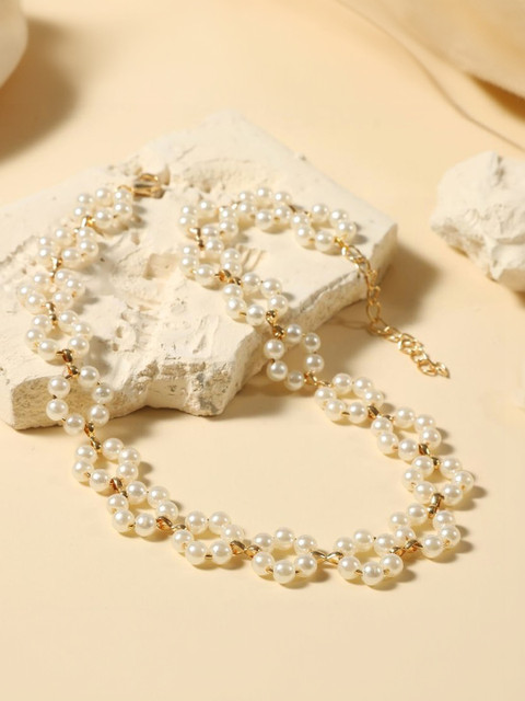 Aesthetic Beaded Choker Chain Collar Design Elegant Fashion Glamorous Gold Jewelry Lightweight Link Modern Necklace Ornamental Party Pearl Plated Premium Shiny Statement Stylish Trendy Unique Versatile Wedding Wear Women Accessories Anti Tarnish Golden Pearl Chain Choker Necklace Girls Ladies