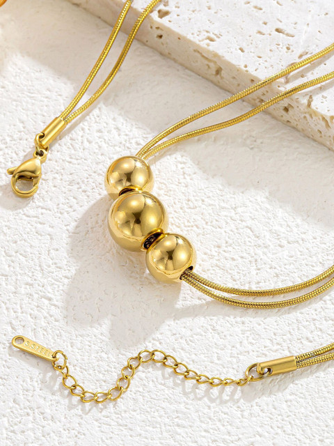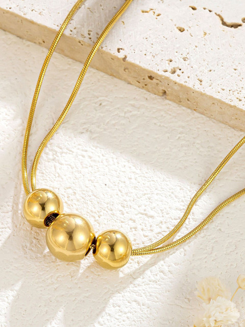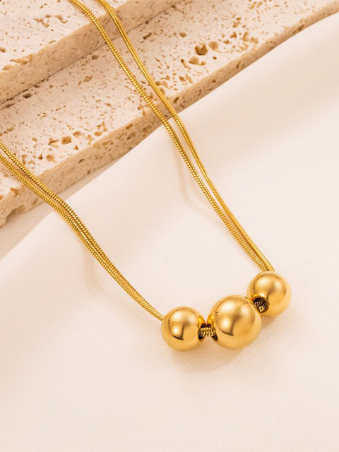 Gold-toned Stainless Steel circular shaped pendant and chain,Gold-plated