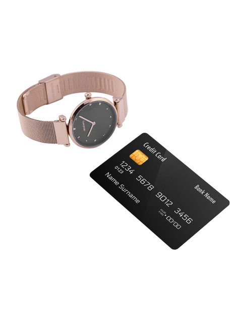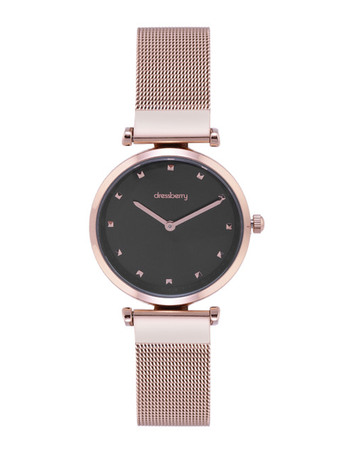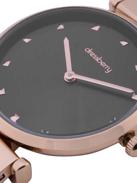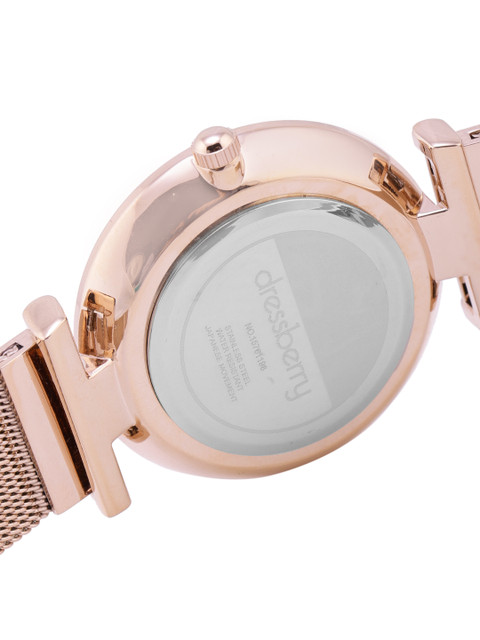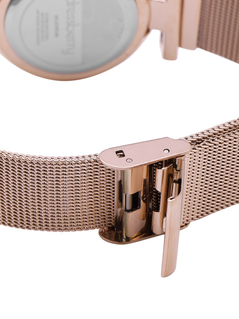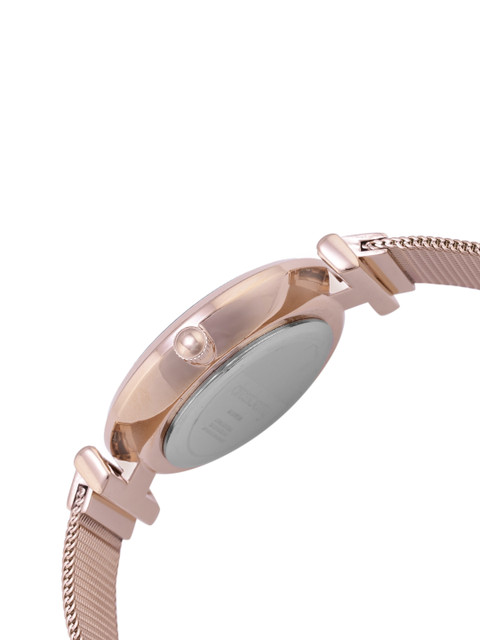 Strap Style: rose gold-toned, bracelet style, stainless steel strap with a foldover closure