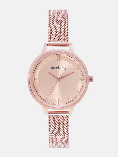 Dial style: rose gold-toned solid round metal dial
