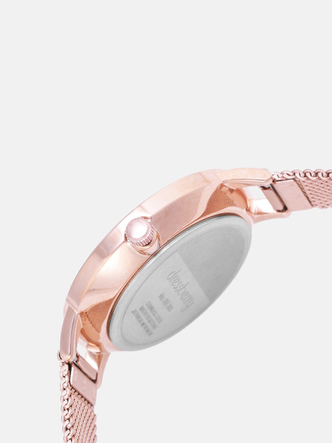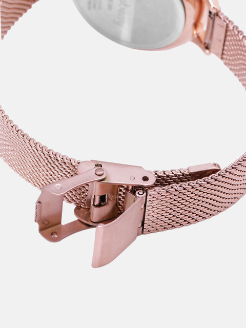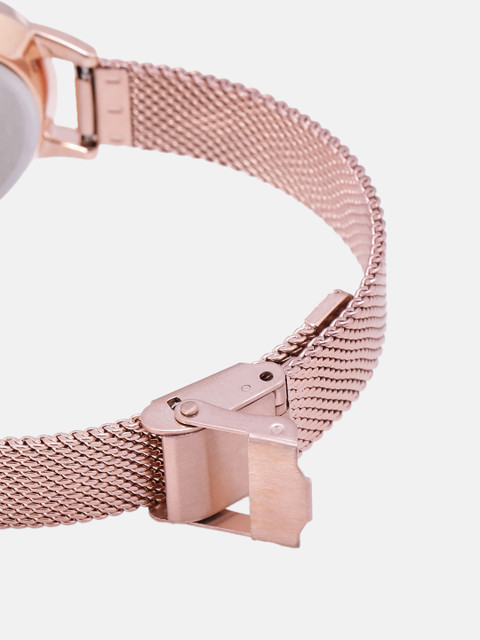 Strap Style: rose gold toned, bracelet style, metal strap with a foldover