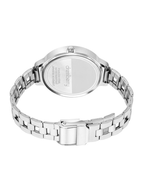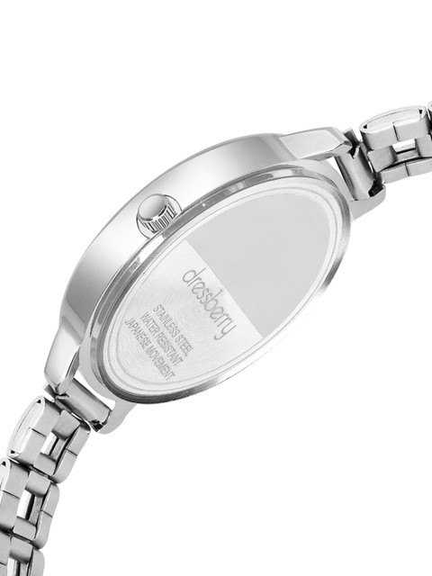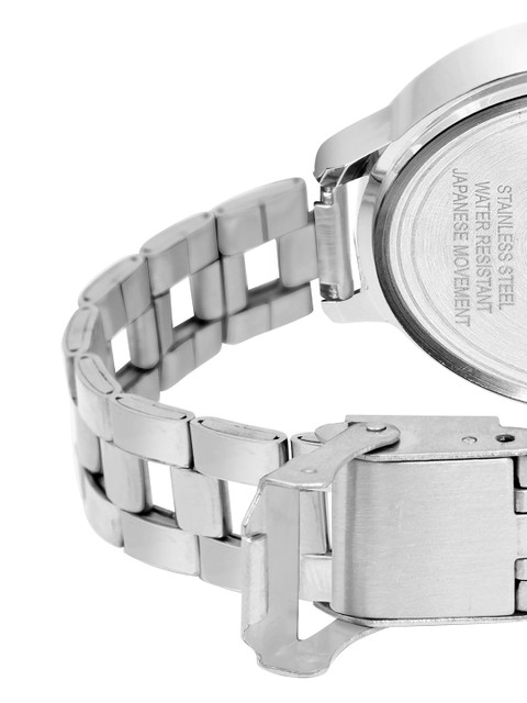 Strap Style: silver toned, regular, stainless steel strap with a foldover