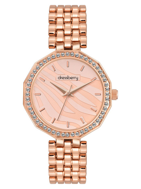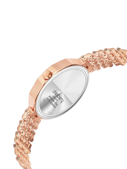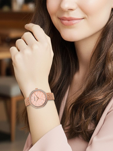Strap Style: rose gold toned, bracelet style, metal strap with a foldover