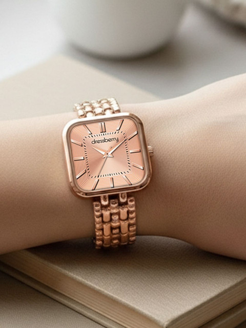 Dial style: Rose Gold-Toned Textured Square Stainless Steel dial