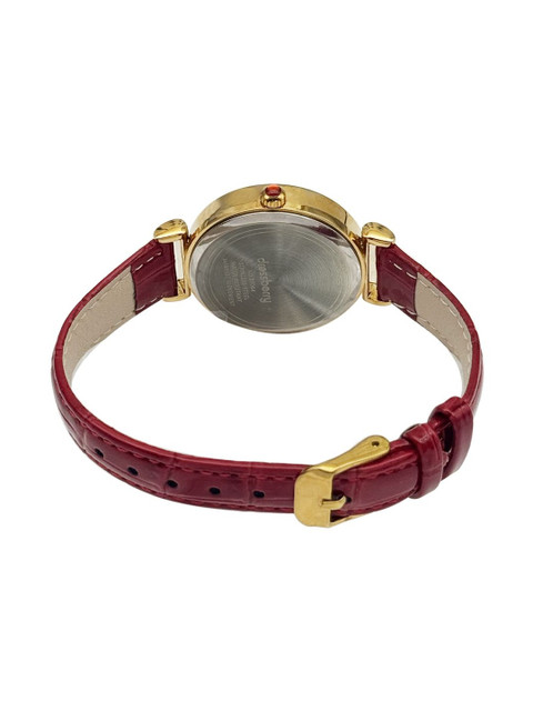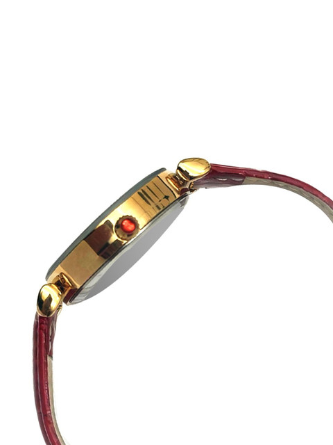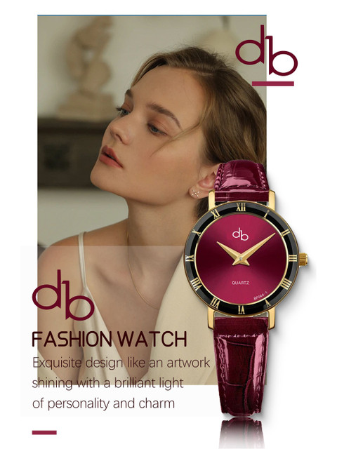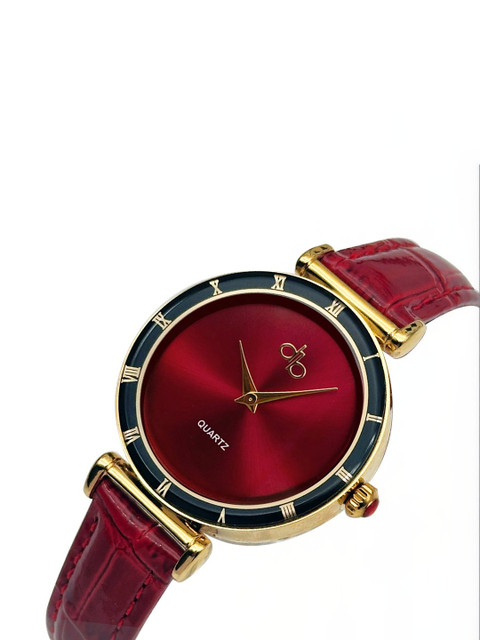 This watch is a powerful accessory designed for glamour and upscale occasions. The rich combination of red and gold is instantly eye-catching and suggests confidence and luxury.Best Paired With: It serves as the ultimate accent piece for evening wear, holiday outfits, cocktail dresses, or formal business attire (like a sharp black suit) where a pop of rich color is desired.Aesthetic: Opulent, dramatic, and vintage-inspired due to the color palette and glossy strap. It works beautifully when paired with gold jewellery.