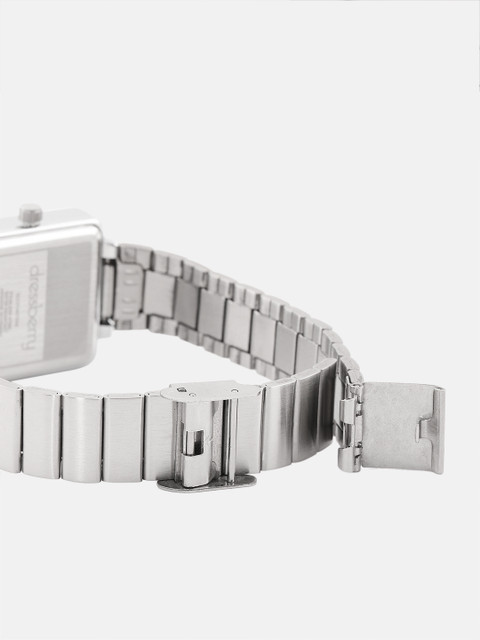 Strap Style: silver toned, bracelet style, stainless steel strap with a foldover