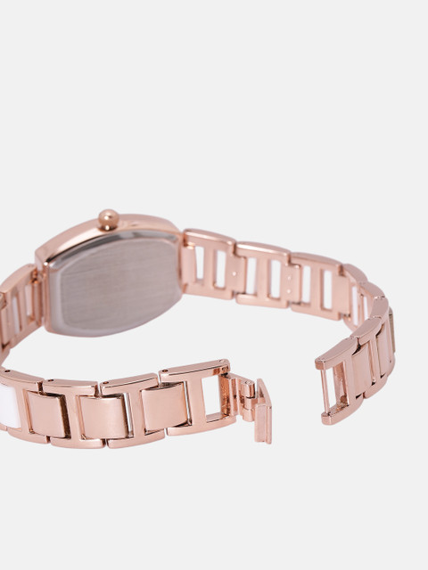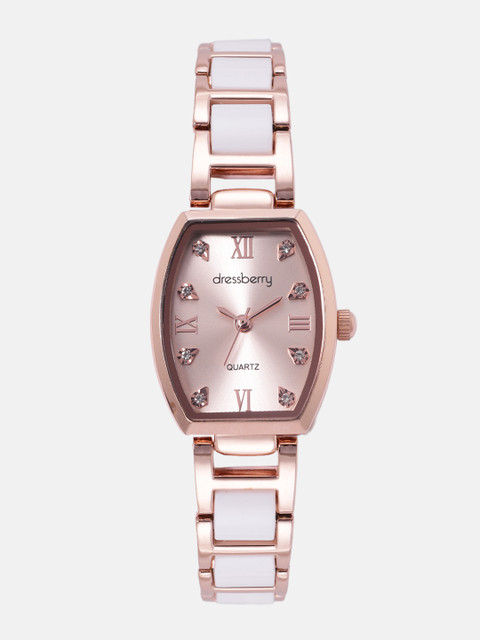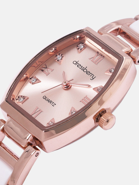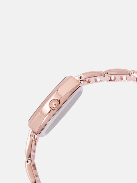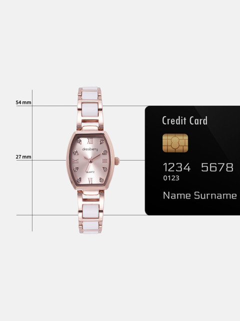 Dial style: rose gold-toned embellished rectangular stainless steel dial
