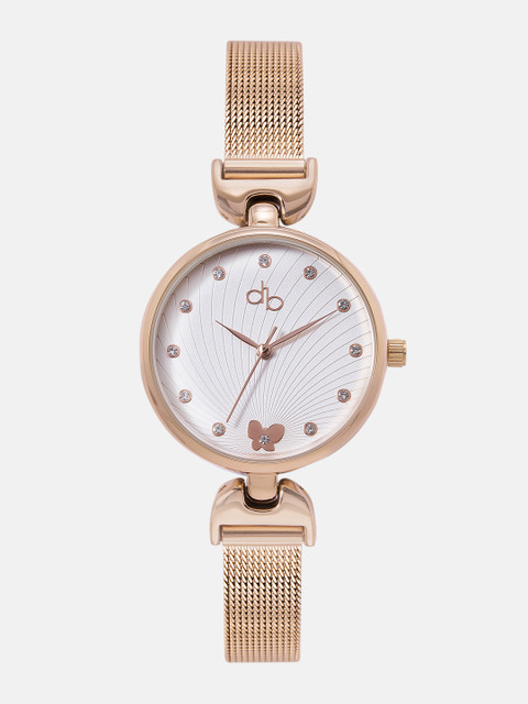 Strap Style: rose gold toned, bracelet style, metal strap with a foldover