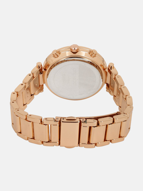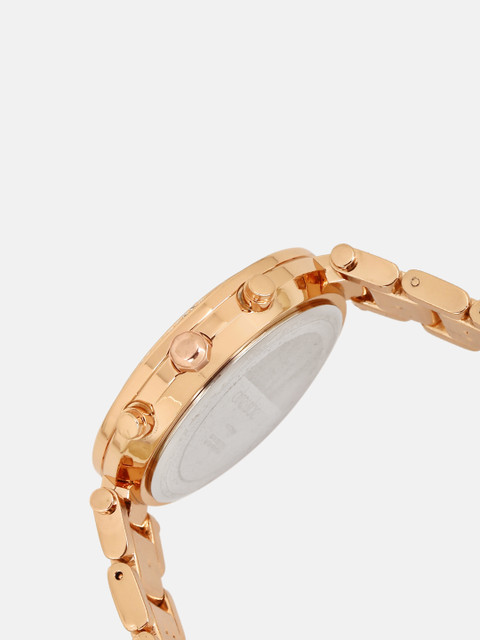 Strap style: Rose Gold-Toned bracelet style, metal strap with a foldover closure