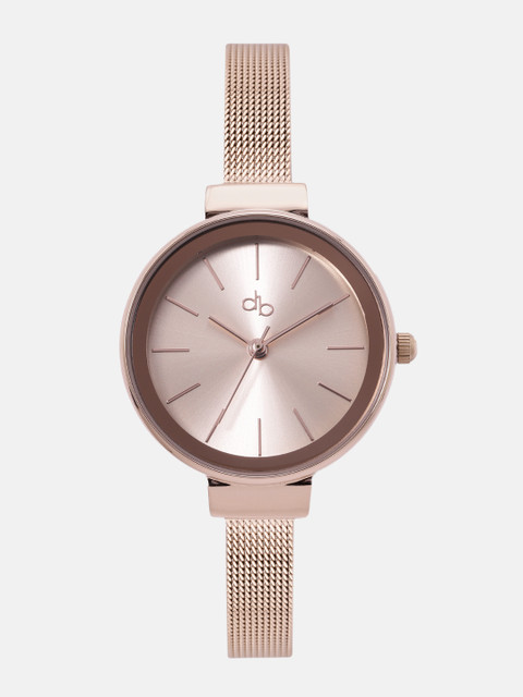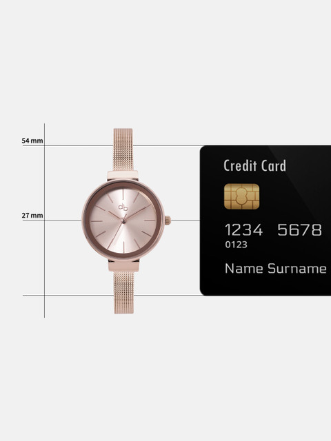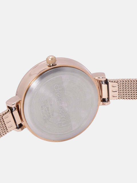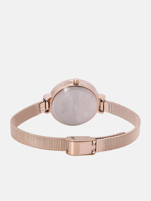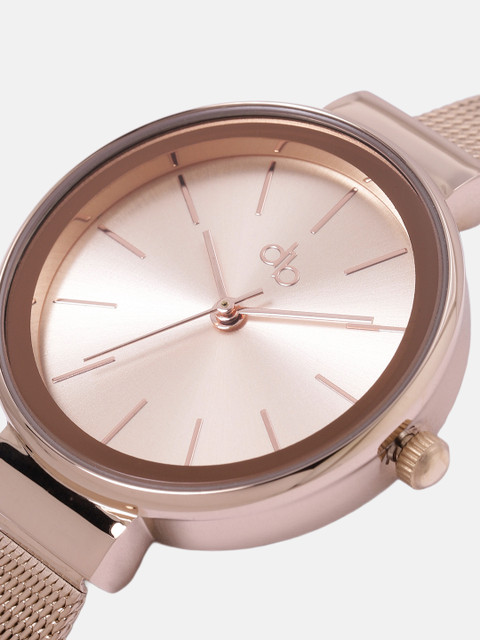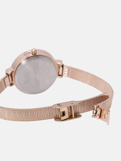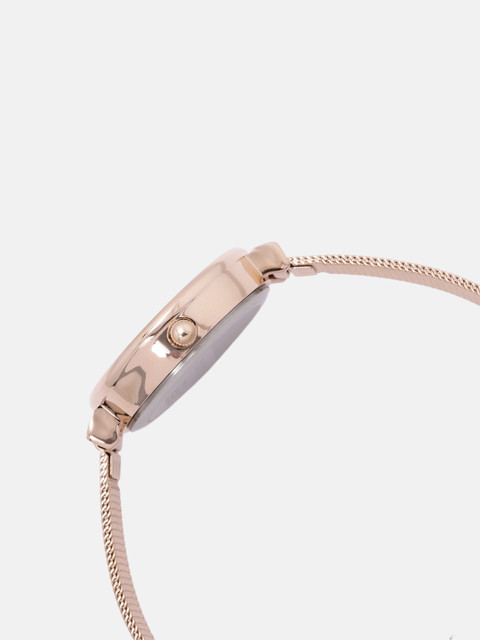 Strap Style: rose gold toned, bracelet style, stainless steel strap with a foldover