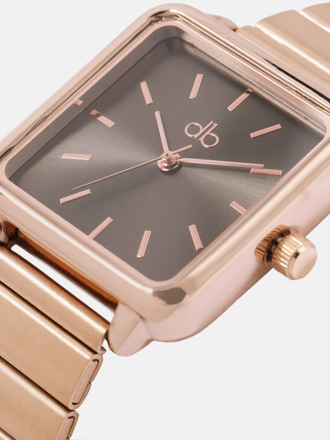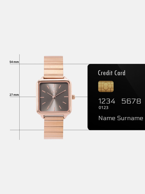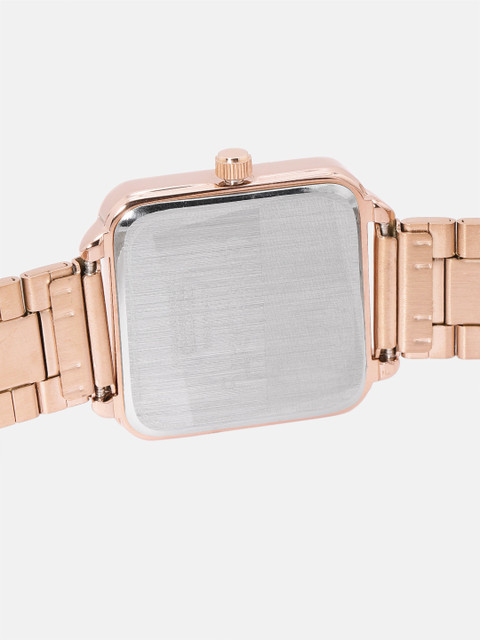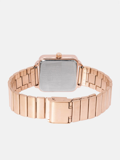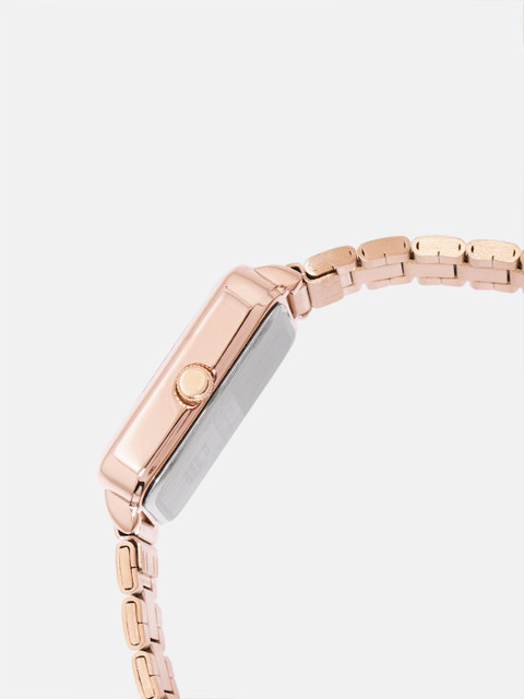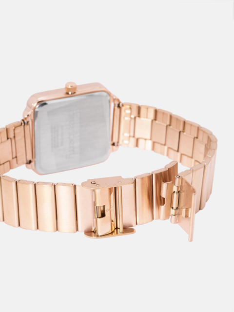 Strap Style: rose gold toned, bracelet style, stainless steel strap with a foldover closure