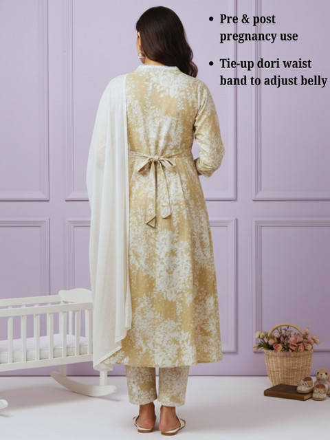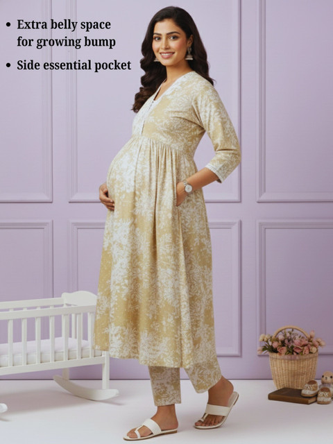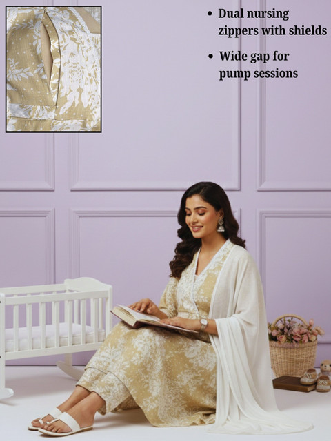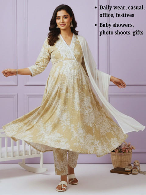 Breeze through pregnancy and beyond in this soft cotton blend maternity kurta set. Designed with a relaxed silhouette and bump-friendly fit, it offers easy nursing access while keeping the look polished. The coordinated set makes everyday dressing effortless, with comfort that feels light all day.