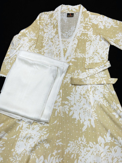Beige printed Kurta with Trousers with dupatta