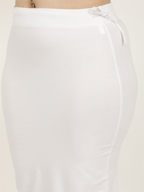 White solid Stretchable saree shapewear, has an elasticated waistband with drawstring closure and flared hem