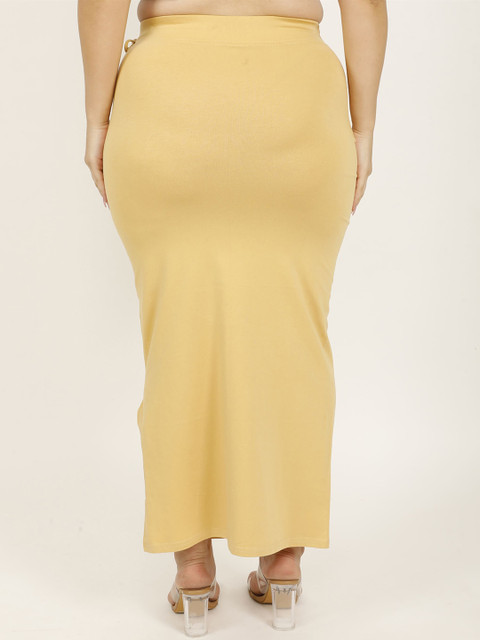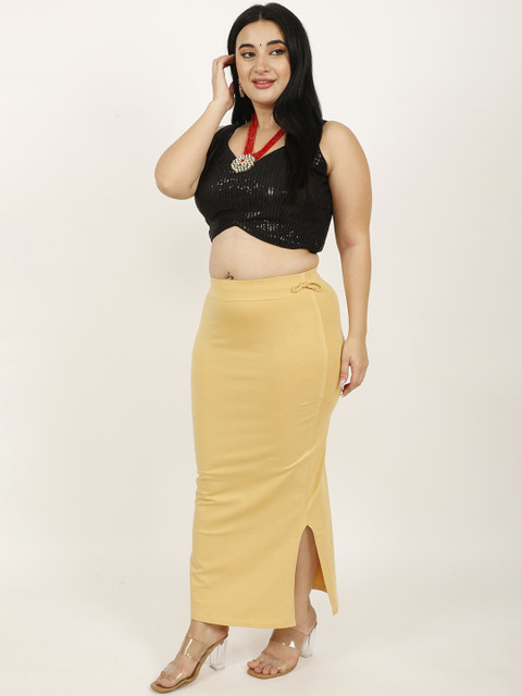 Beige solid Stretchable saree shapewear, has an elasticated waistband with drawstring closure and flared hem