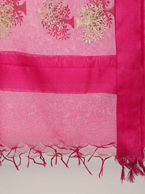 Floral embroidered dupatta, tasselled border