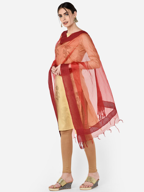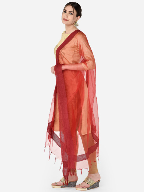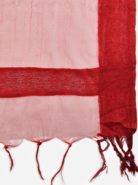 Maroon solid Dupatta and has a tasselled border