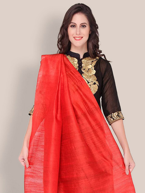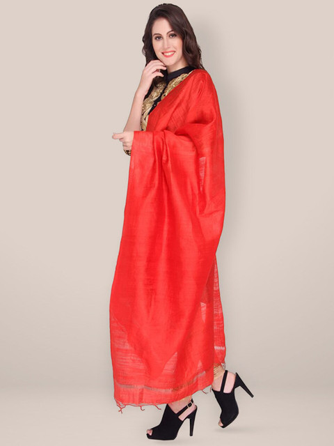 Red solid dupatta, tasselled border