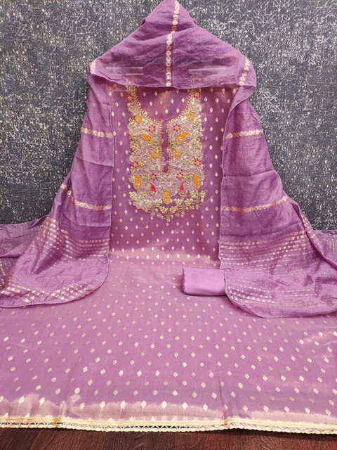 Detailed embroidery and refined craftsmanship give this dress material a luxurious and timeless ethnic appeal.