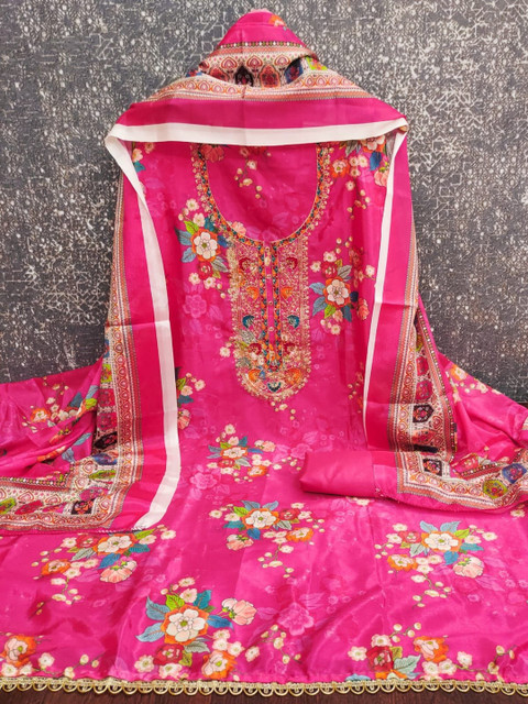Pink Embroidered Unstitched Dress Material