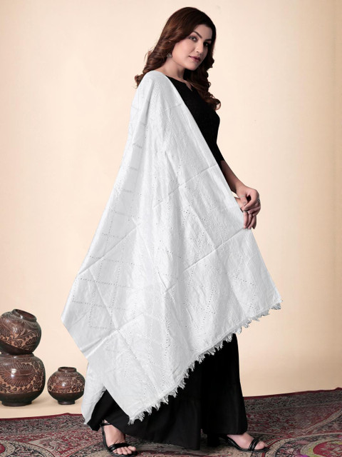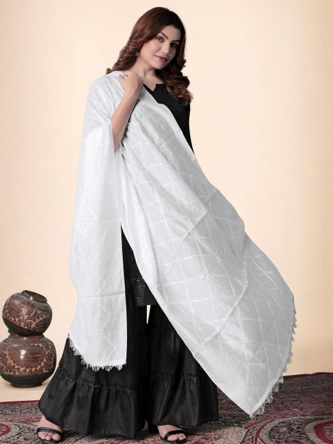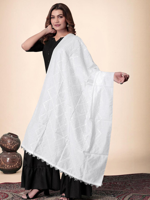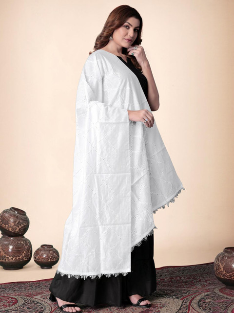 EBADAT Embroidered White Cotton Dupatta