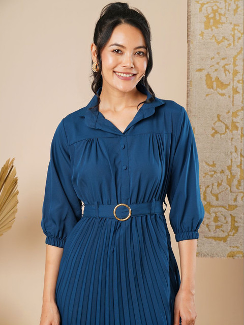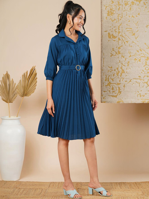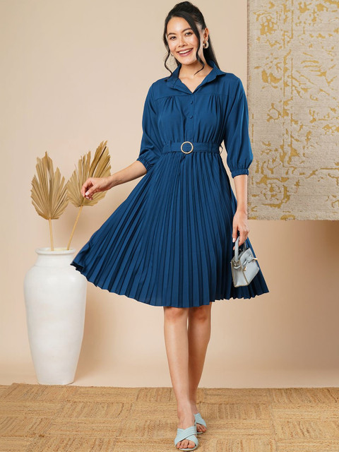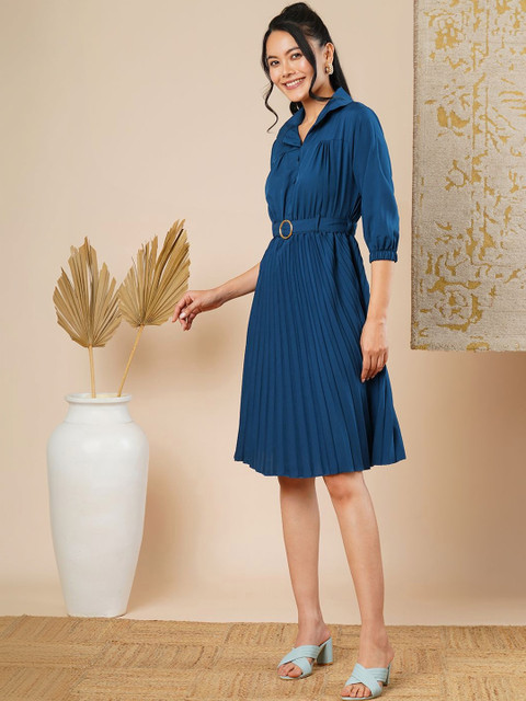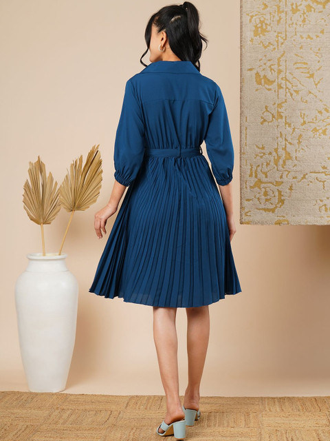 - Teal and teal solid fit & flare dress