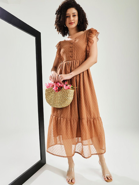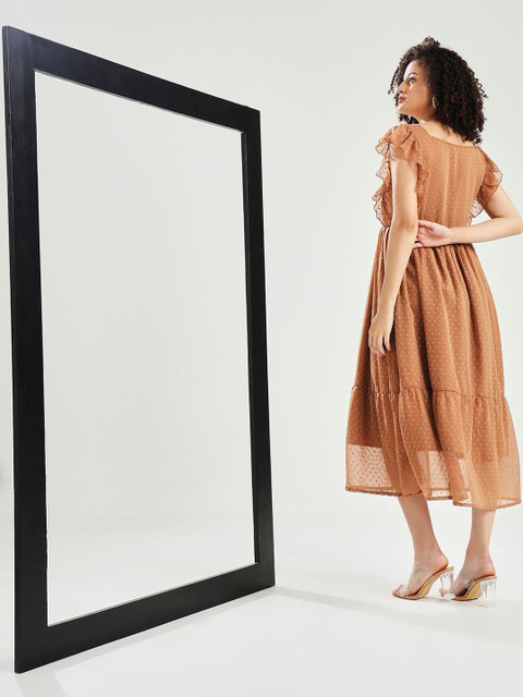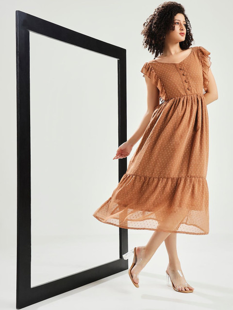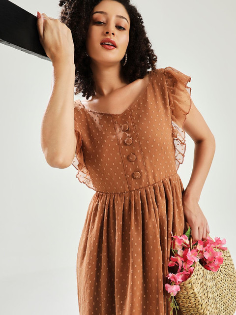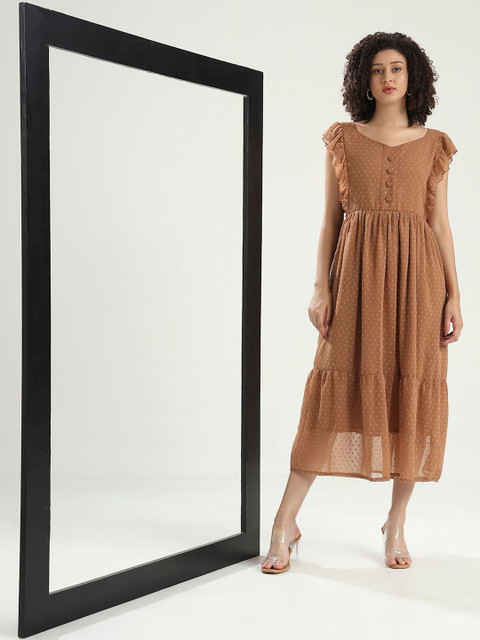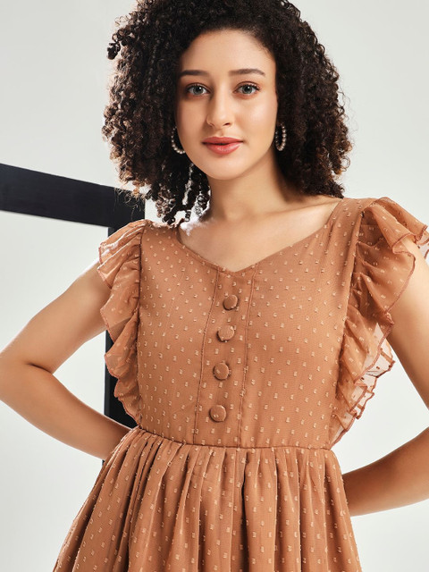 - Brown and brown self design fit & flare dress