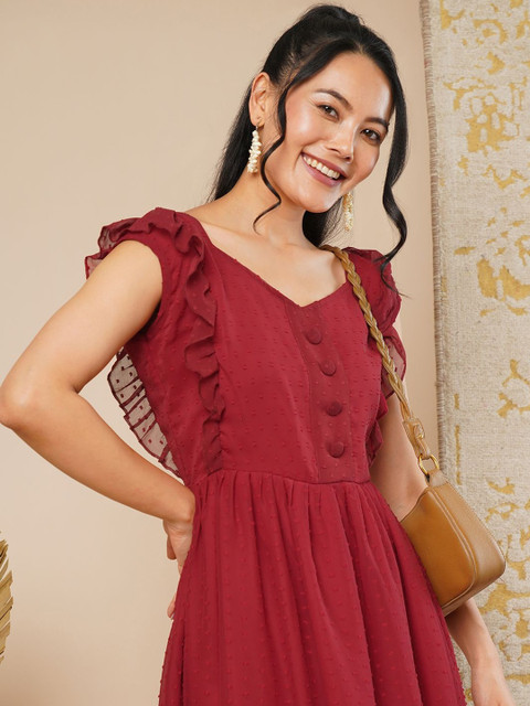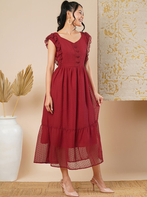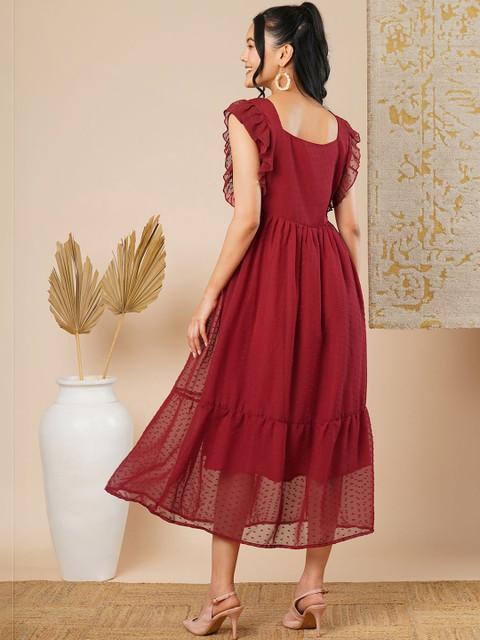 Ecolors Fab Flutter Sleeve Ruffled Georgette Fit & Flare Midi Dress