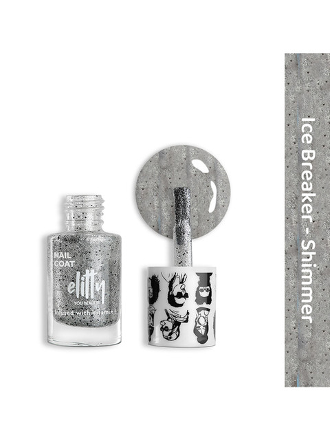 Elitty glitter nail paint is really pretty with fine gold glitters that give a classy shine. The formula is smooth, easy to apply, and spreads evenly without clumping. It dries fairly quickly and looks great as a top coat or even alone. Love that it’s infused with Vitamin E, so nails don’t feel dry after use.
