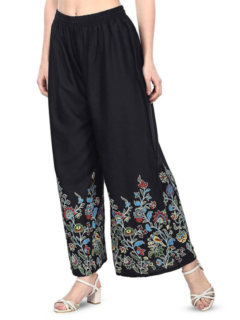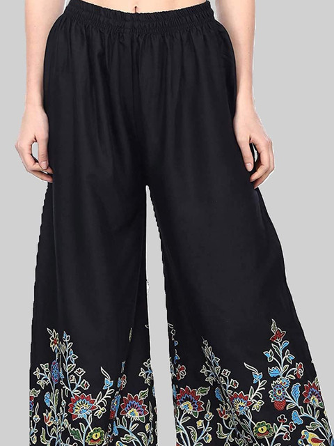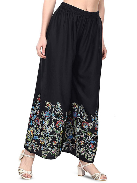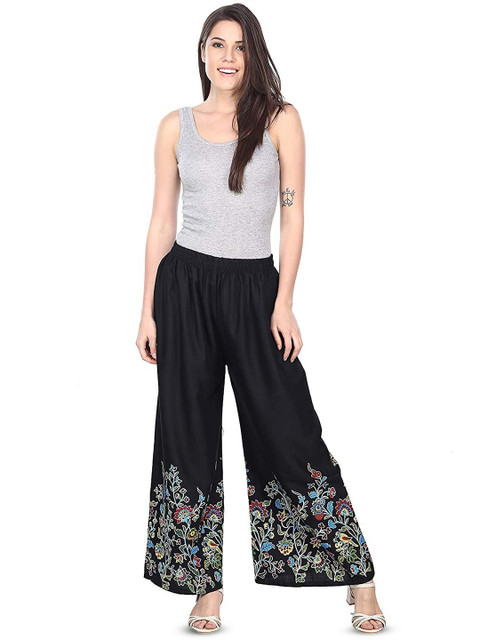- Black and blue woven palazzos