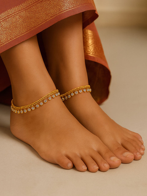 1 review for Estele Gold-Plated Crystals Studded And Ghungroo Beaded Anklets