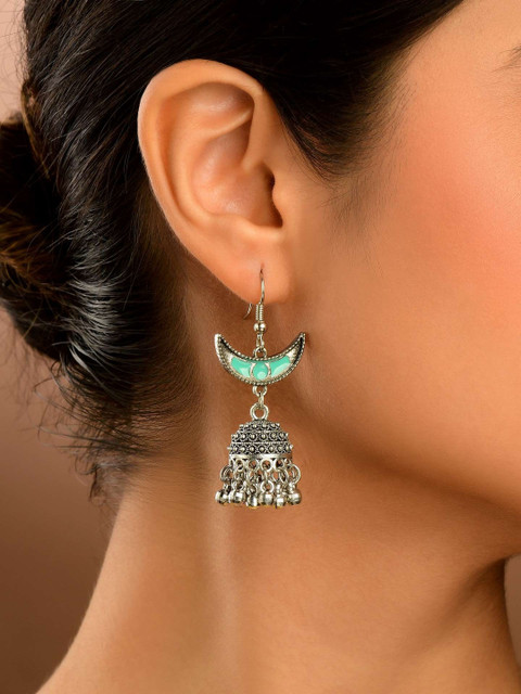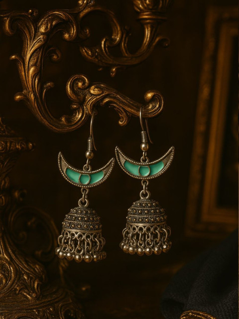 EVERSTYLISH RAJASVI Silver-Plated Oxidised Crescent Shaped Jhumkas