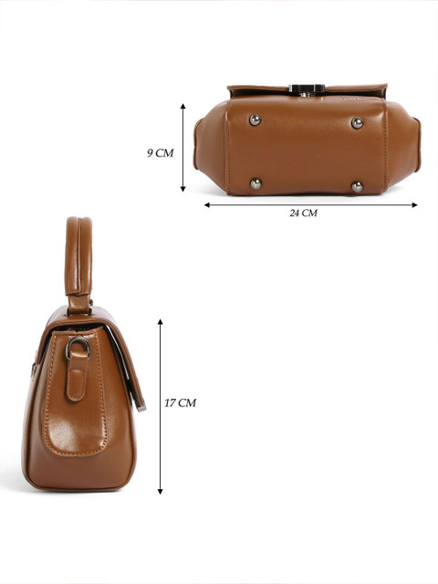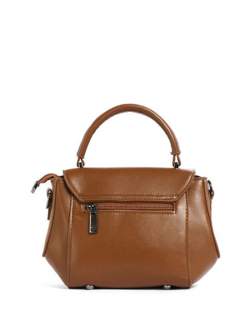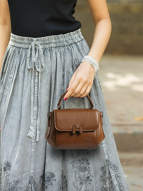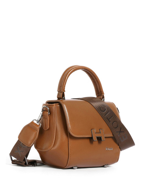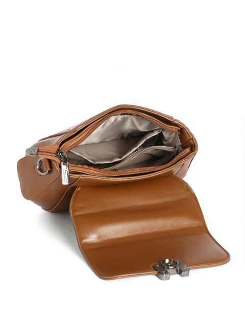 Brown textured sling bag, with zip detail detail