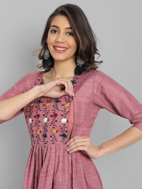 Fabriza Women Floral Embroidered Thread Work Floral Maternity Anarkali Kurta