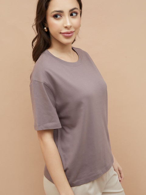 Fame Forever by Lifestyle Women Plus Size Solid Round Neck Pure Cotton T-shirt