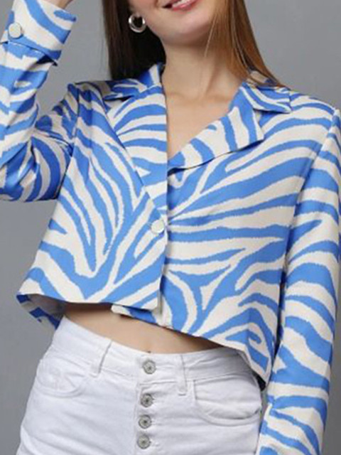 Be the first to review “Fashion Satin Tiger Printed Cropped Single Breasted Blazer”