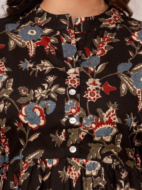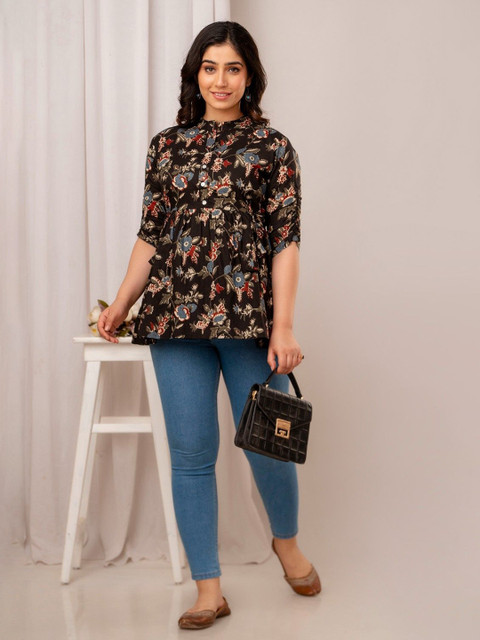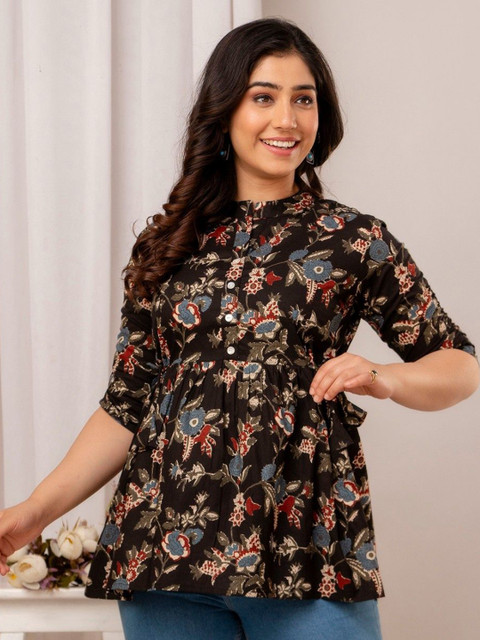 FASHION SWAG Women Ethnic Printd Mandarin Collar Cotton Tunic